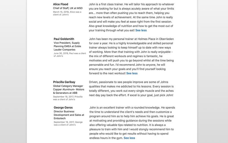 I have spent more than 10 years training clients one to one. In addition, I have a Master Degree in Sport Science (focused on Physiology/hormones and Nutrition) and other Accredited Certifications related to fitness and nutrition that help me use efficient and scientific ways to to help my clients manage to get the body they want.