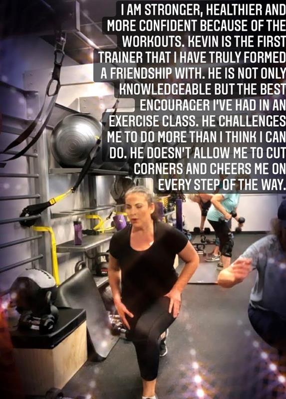 "I am stronger, healthier, and more confident because of the workouts. Kevin is the first trainer that I have truly formed a friendship. He is not only knowledgeable but the best encourager I’ve had in an exercise class. He challenges me to do more than I think I can do. He doesn’t allow me to cut corners and cheers me on every step of the way."