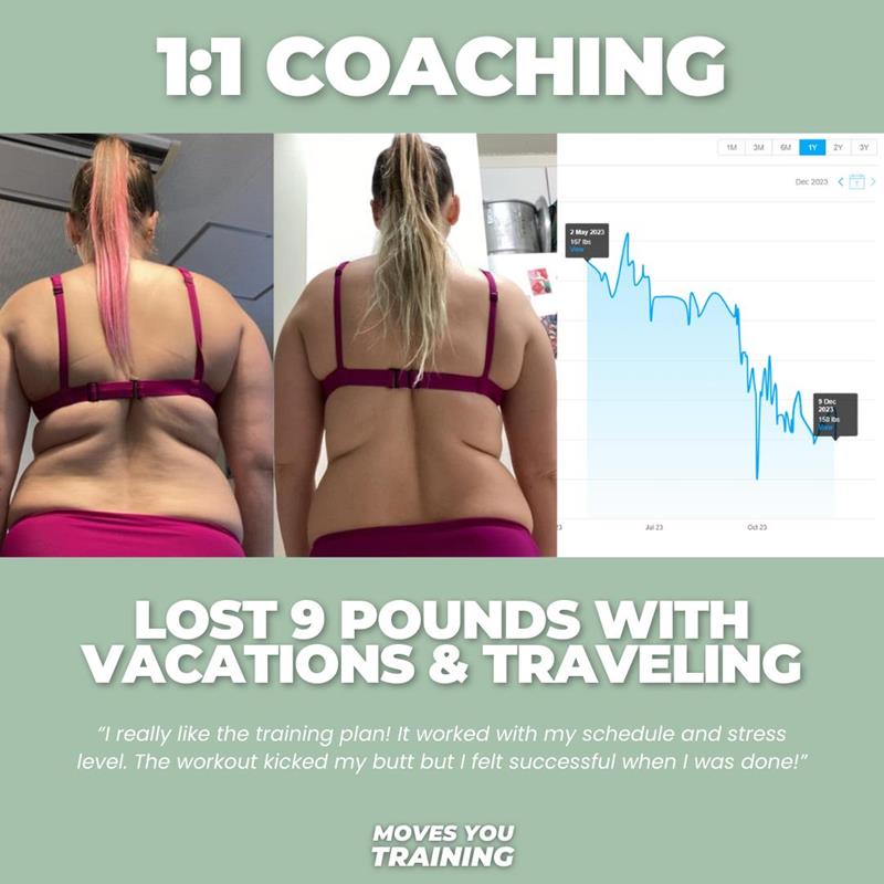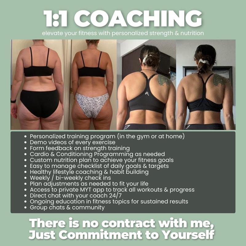 Welcome to Moves You Training! Our mission is to empower men and women with the knowledge, support, and motivation needed to to build strong minds, bodies and lifestyles. 1:1 Online Coaching comes with custom strength training, nutrition plans/guidance, cardio routine and all goals needed for the composition changes you're looking for. You will have weekly check ins and (as needed) 1:1 zoom meetings to keep you progressing. After signing up, you will get immediate access to the app, and will start working with your coach! *This is an automated month to month payment for a 12 month commitment, after which you can continue on with the same monthly rate for as long as you feel you would like.
