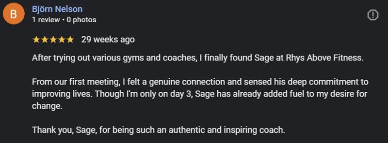 “Hey, I’m Coach Sage! I founded Rhys Above Fitness back in January 2022.
